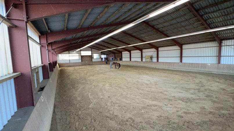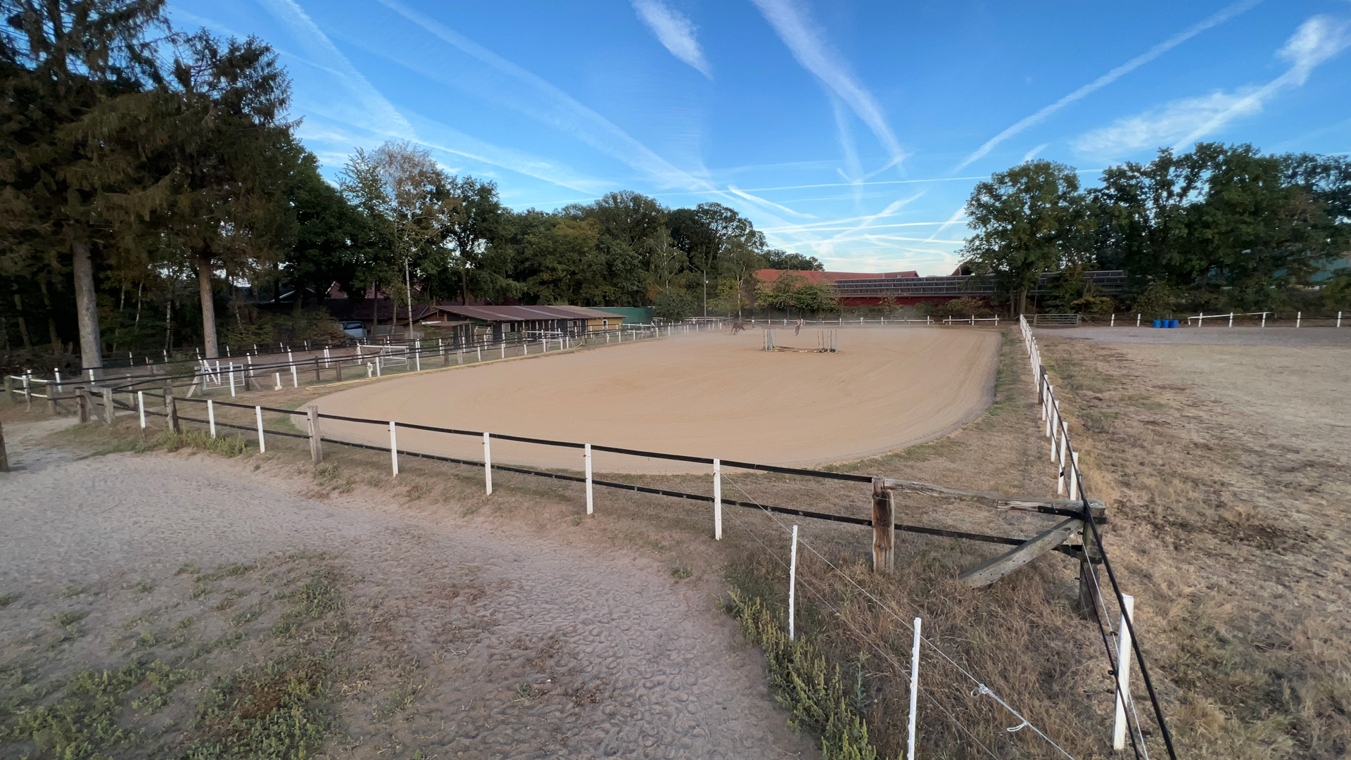 Auf dem Reiterhof befinden sich eine kleine & eine große Reithalle, ein beleuchteter Außenreitplatz, ein Innen- und ein Außenwaschplatz, diverse Anbindeplätze zum Putzen, Sattelschränke und ein gemütliches Reiterhüttchen. Zudem stehen wunderbare Ausreitmöglichkeiten in der angrenzenden Umgebung zur Verfügung.